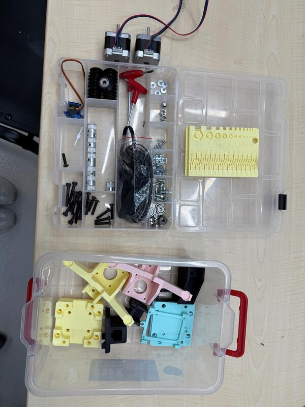 We started by gathering all of our tools and parts. We 3d printed some parts like the design files of the Blot machine and also designed some spacers required for the connections.
