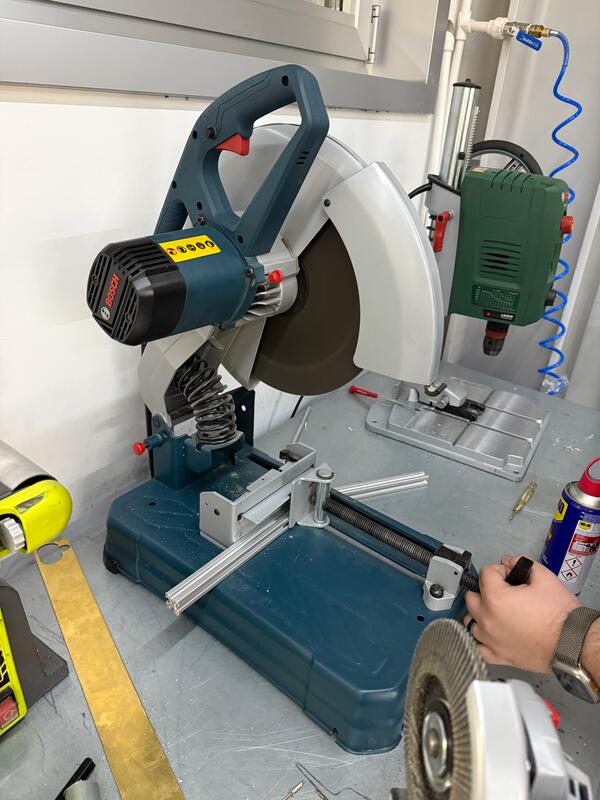 We cut 2 aluminum extrusions into 25cm in length pieces.